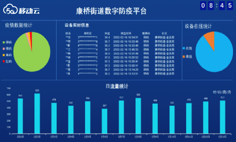 “經過康橋街道的試用,大家也體驗到5G防疫通的智能便利。近一個月來,5G防疫通已助力60余個街道的數智防疫!闭憬苿庸ぷ魅藛T介紹,“利用5G消息+大數據能力,‘5G防疫通’不僅賦能街道防疫‘最后一百米’,后向能接入‘移動云’防疫駕駛艙,沉淀數據倉,進一步賦能社會綜合治理能力,加快基層數字化防疫新進程!