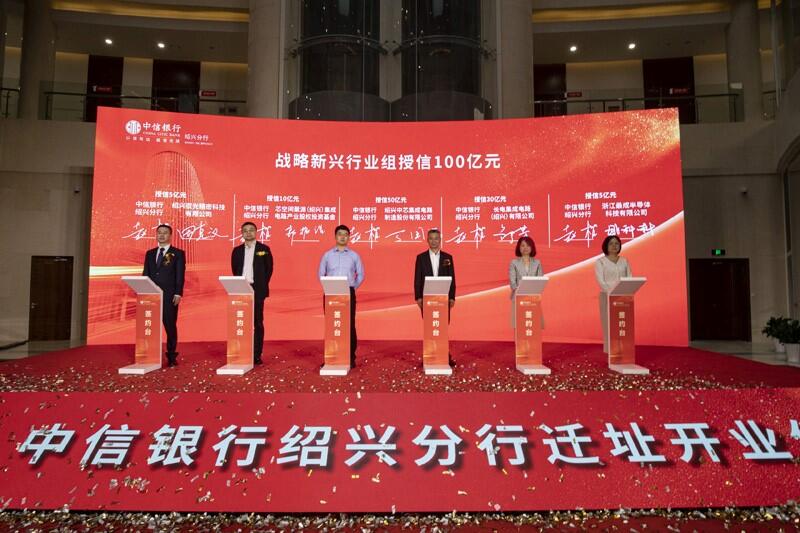 5月29日下午,中信銀行紹興分行在位于紹興市鏡湖新區的新址舉行了中信銀行紹興分行遷址開業暨支持“智造強市”銀企簽約儀式,現場為15家優質實體企業提供授信服務,簽約總金額300億元,以實際行動為紹興經濟社會高質量發展提供強有力的金融支持。