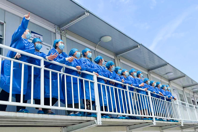 “從5月23日凌晨開始奮戰,這期間我們穿防護服最長的時間超過12個小時,出艙以后衣服全部濕透,臉上全是印子,呼吸也有點不順暢,前幾天幾乎每天只能睡2個小時!眽坻爆撜f,印象最深的是下大暴雨那幾天,當時房間漏水,外面也發大水,她們全都是冒著大雨進倉采樣。雖然每天要照顧343名隔離人員,但想著為了疫情早日消散,所有疲憊和付出都是值得的。