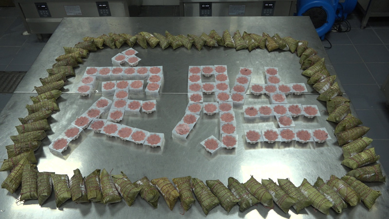 食堂員工準備的定勝糕和粽子。南潯區委宣傳部供圖