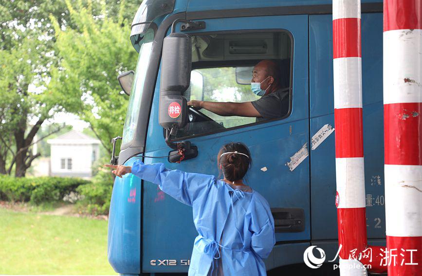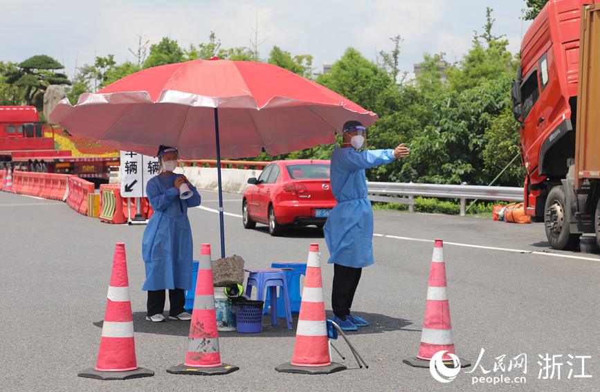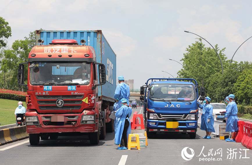 6月11日上午,在杭州灣跨海大橋北接線平湖高速出口(曹橋),由平湖市交通運輸局,公安、綜合執法局等多部門組成的疫情防控執勤人員正在高速卡點對外來(返)平湖市車輛開展分流引導工作,并對過往人員、車輛進行嚴格過篩檢查。