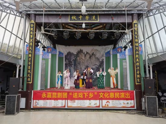 一小時后,在徐緩悠揚的樂曲聲中,演員依次登場。受疫情影響,這也是永嘉昆劇團近幾個月來首次開展“送戲下鄉”文化惠民演出,F場吸引了不少附近村社的“戲迷”前來“捧場”。