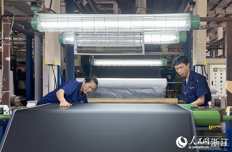 工人在生產水性合成革。人民網 王麗瑋攝