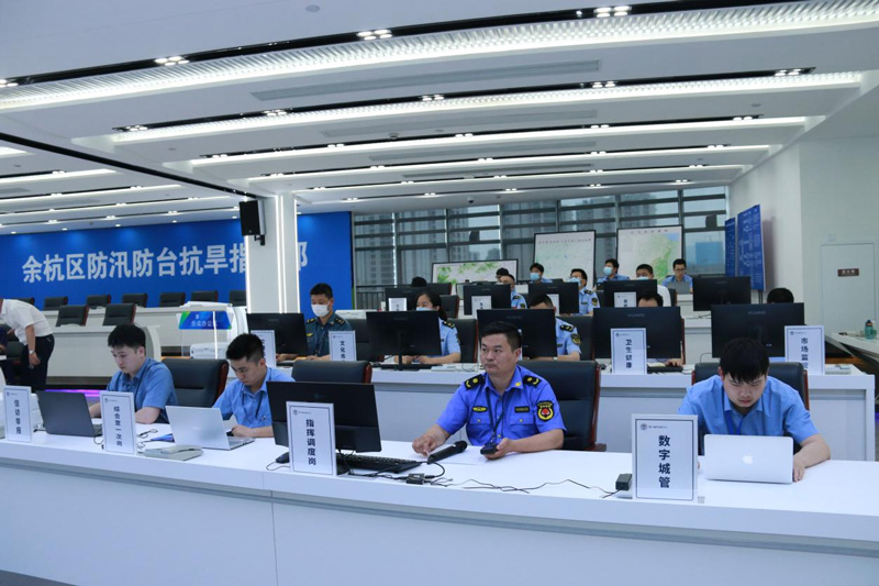對此余杭區行政執法指揮中心迅速啟動城市管理防臺防汛Ⅲ級應急響應,余杭區綜合行政執法局市政、指揮、環衛等中心骨干第一時間入駐區級指揮中心,各鎮街城市管理人員同步入駐鎮街指揮中心,數字城管采集員24小時做好線上線下監控,市政環衛50名應急搶險隊隊員迅速集結到位,各鎮街城市管理應急力量同步待命,隨時響應參加應急搶險保障。