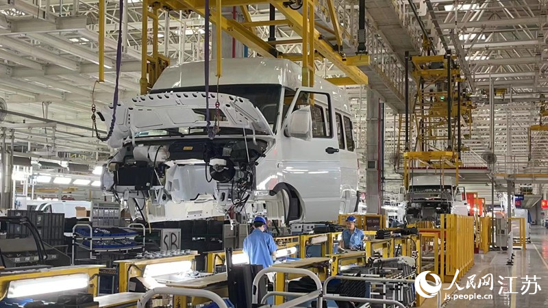 位于南京浦口區的南京依維柯汽車有限公司內,一輛輛新車在自動化生產線上迅速地完成組裝,發往全國各地。人民網 黃啟源攝