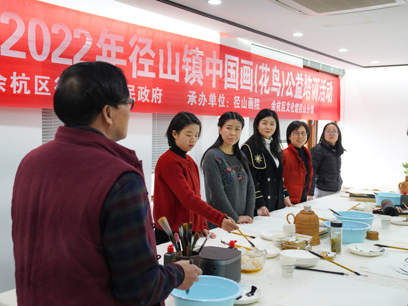 組織欣賞繪畫藝術展。徑山鎮供圖