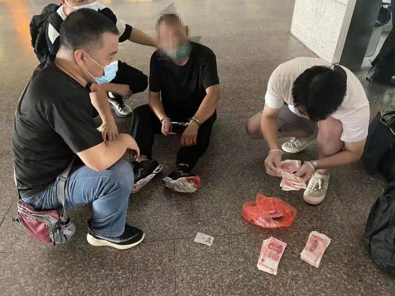 接到通報后,乘警程靜妍會同列車工作人員通過查驗車票,確定了嫌疑人陳某所在的車廂。當日8時30分許,增援民警上車后,民警立即將嫌疑人陳某控制,并從其身上搜出面值100元的人民幣4沓,共計4萬元。