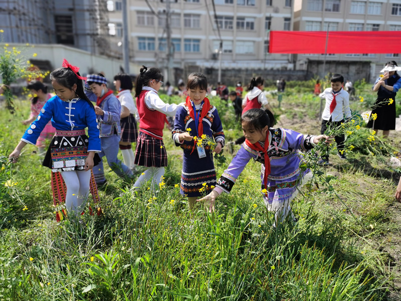 “耕讀傳家,詩書繼世”是中華民族的光榮傳統,為了幫助民族子弟全面融入當地社會,鑄牢中華民族共同體意識。2021年初,臨海市委統戰部在大洋街道試點培育“同心耕讀”書院這一“民族聯心”平臺。即在民族學校邊上開辟“同心耕讀”農場,鼓勵學生種上屬于自己民族特色的農作物。四川牧馬山的二荊條、貴州的折耳根、云南的姜柄瓜、四川的蓮花白,也包括臨海當地的麒麟瓜,在同一片土地上茁壯成長。