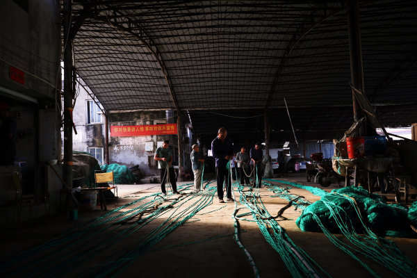 距離8月1日“小開漁”、9月16日全面開漁還有一段時間,不少溫州瑞安漁民利用休漁期在家里修補、編織漁網,確保伏休后正常投入生產。