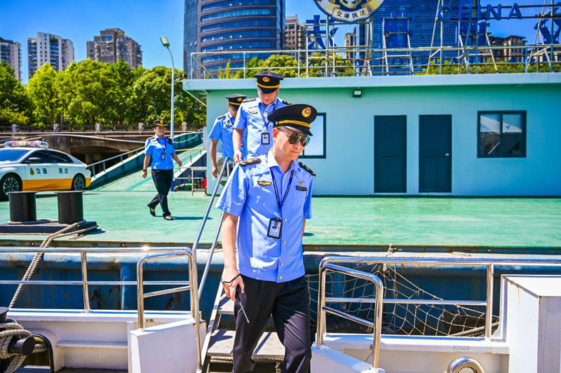 溫州港航執法二大隊的執法人員出發執行任務。浙江移動供圖