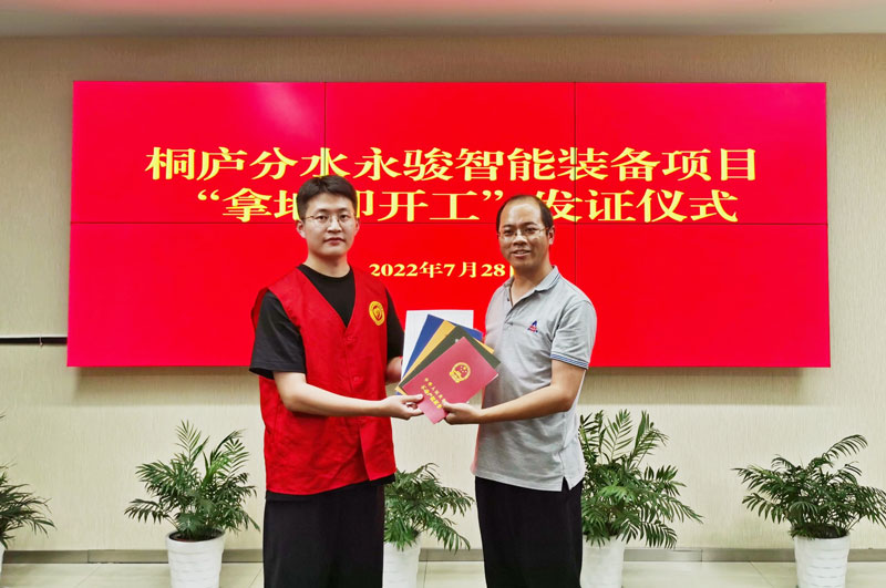 7月28日,位于桐廬縣分水鎮天英園區的年產150臺高端精密數控磨床生產項目僅用3小時就取得了項目開工需要的備案信息表、用地規劃許可證、不動產權證、工程規劃許可證、施工許可證,讓企業在短時間內具備了合法開工條件,成為桐廬首個“五證齊發”“拿地即開工”項目。