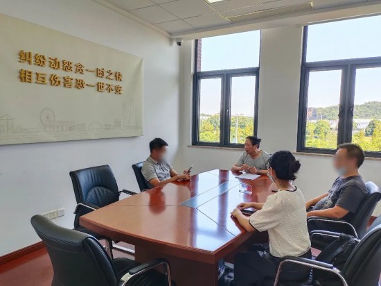 為進一步提升調解“軟實力”,柴橋法庭引入駐庭民間調解組織,與街道合作培育“蘆江大阿嫂”家事調解工作室,5名調解員每日輪流進駐法庭?!按蟀⑸眰兪煜ど缜?、親和力強,對離婚、撫養、贍養、鄰里等糾紛的處理很有一套,該調解組織也因此獲評“全國維護婦女兒童權益先進集體”。