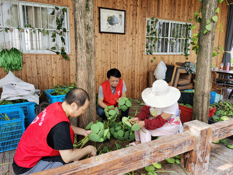 連日來,在蘭溪市赤溪街道常滿塘村,十里荷塘迎來了蓮蓬收獲期,但也面臨勞動力不足的問題?!跋阋纭敝驹刚邊f同煙草零售戶,搶抓時節,積極協助群眾進行蓮蓬采摘,并運用線上平臺助力開展“香溢助農”活動,以在線直播形式打開銷售渠道,提供助農惠農新平臺。