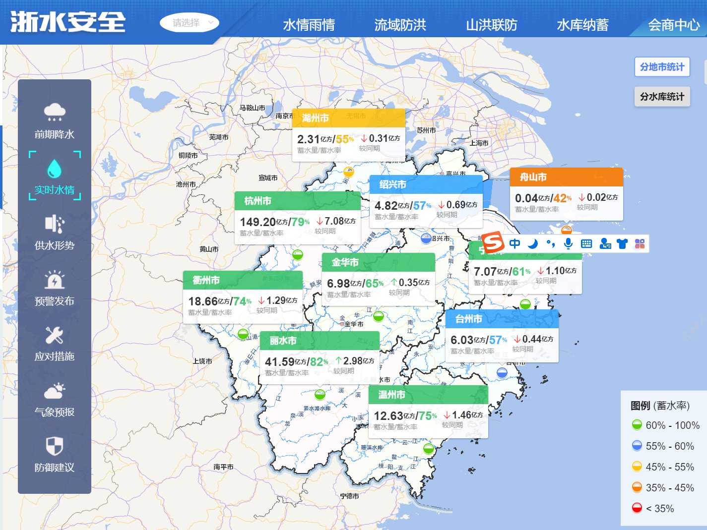 浙水安全實時水情監測(8月19日)。浙江省水利廳供圖