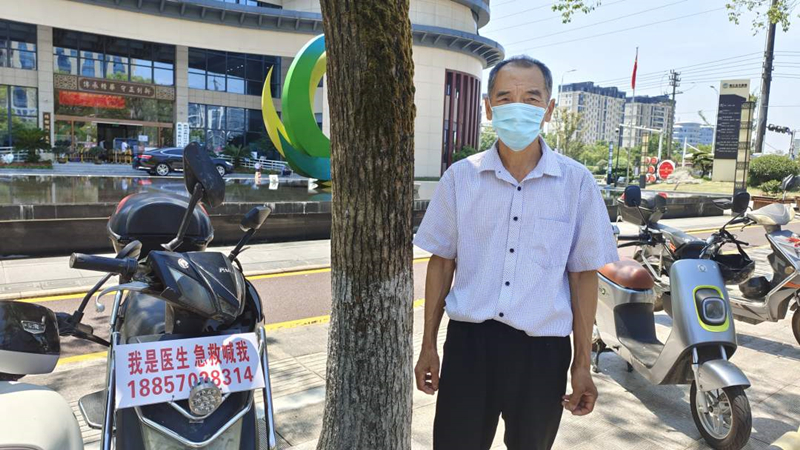 等待期間,呂三良多次詢問對方的單位與姓名,但他只是一個勁說救人要緊、避而不答。但是,呂三良記得,好心人的電動車頭有一塊牌子,上面寫著“我是醫生 急救喊我”。