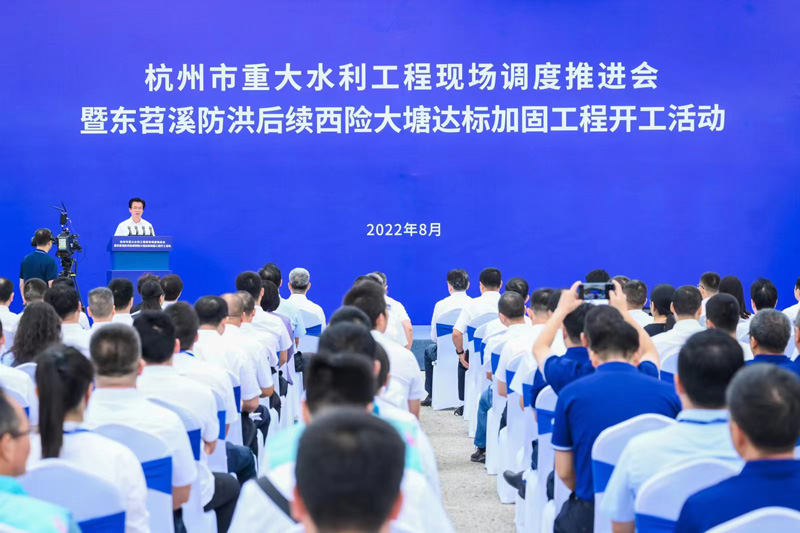 8月31日,杭州市重大水利工程現場調度推進會暨東苕溪防洪后續西險大塘達標加固工程開工活動舉行,涉及新開工重大水利工程10項,總投資221億元。其中,杭州余杭區西險大塘達標加固工程總投資58億元,是浙江省政府主導的四個重大水利項目之一,也是今年全省新開工重大水利工程中,投資體量最大的一項目。