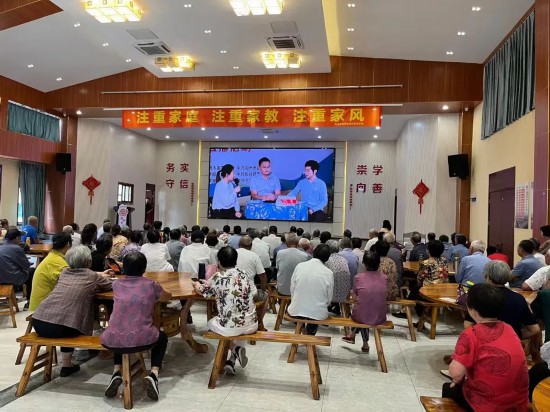村民在文化禮堂觀看宣講視頻。湖州市委宣傳部供圖