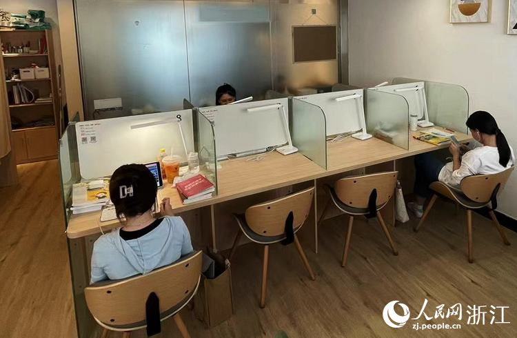 在杭州西湖文化廣場一家24小時自習室內,人們正在學習。人民網 王麗瑋攝