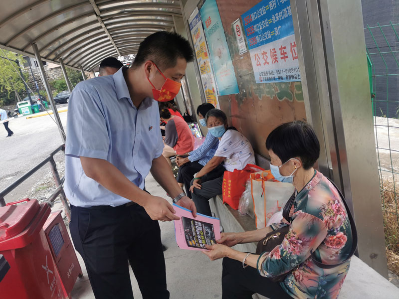 發放安全知識宣傳單。浙江滬杭甬公司供圖
