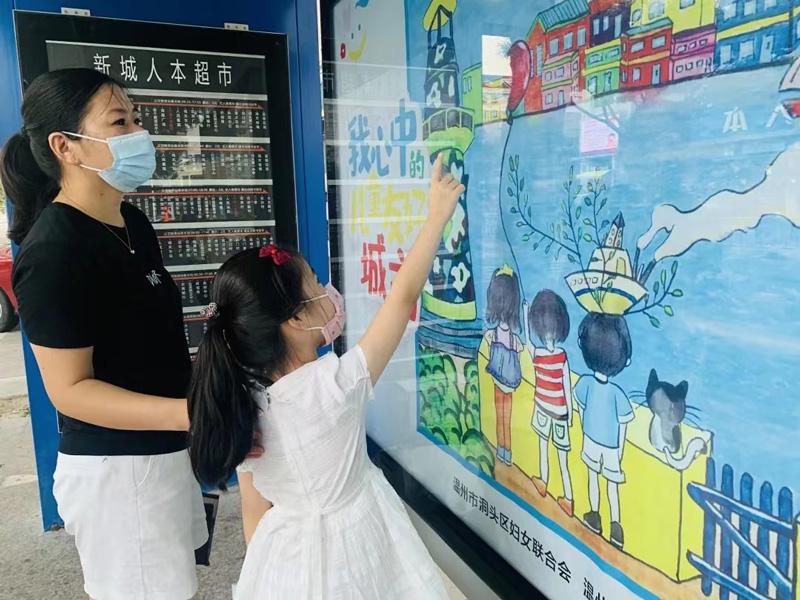 繽紛的夏日沙灘、歡樂的兒童樂園、七彩的童話漁村……新學期伊始,一幅幅兒童創意畫作將溫州洞頭的公交候車站臺裝飾一新。