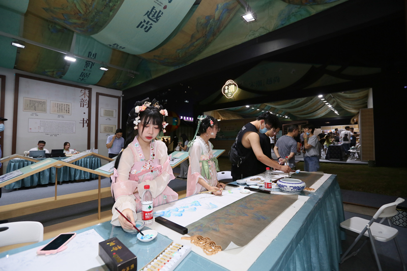 此次“宋潮·越尚”宋韻藝術生活展為期5天,通過風雅茗、國釀醉、大宋歌、放翁宴、非遺潮、書畫憶六大板塊,開展書法、攝影、舞蹈、戲曲、收藏、詩詞等蘊含南宋文化藝術韻味的活動。