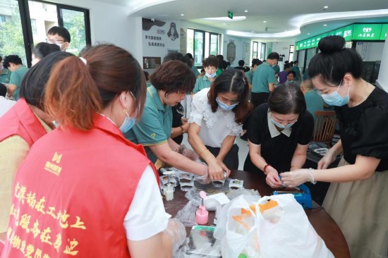 眾人在萬順社區居家養老服務照料中心制作月餅。龍灣區委宣傳部供圖