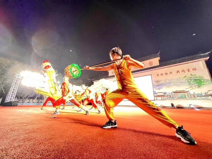 移沿山村傳統喜慶的《稻穗龍》拉開了活動的序幕,小伙子們矯健的身影、精湛的舞龍技藝贏得了觀眾的陣陣掌聲。歌曲《共同富??凑憬?、詩朗誦《月光下的中國》、舞蹈《紅旗頌》等節目接連上演。八里店鎮東升社區舞蹈隊表演的《歡樂送給你》、沈根法“草根”藝術團表演的說唱《浙風十里 文明有我》等貼近群眾生活的節目更是將活動推向了高潮。