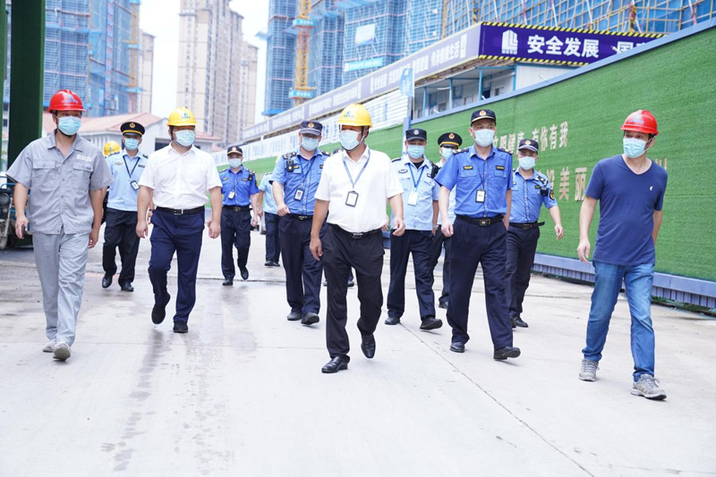 執法隊伍前往轄區東海閑湖城高層B區工程,一次性檢查工地項目。閑林街道供圖