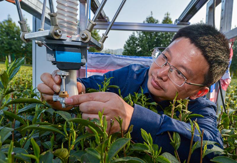 “通過對大量茶樹芽葉圖像數據的學習,采摘機器人可自動識別茶樹新梢嫩芽?!睋憬砉ご髮W農業機械團隊專家、項目負責人陳建能介紹,目前,第三代名優茶采摘機器人的芽葉識別準確率可達85%。
