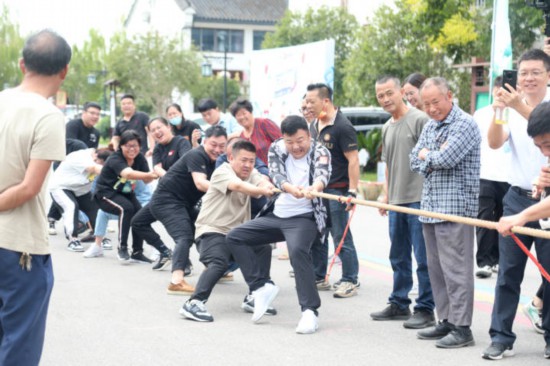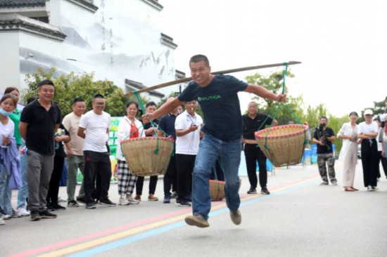 在團體賽齊心協力(拔河)比賽中,八里店鎮潞村隊伍成員齊聲喊出必勝的口號,在吶喊助威聲中鉚足勁一舉拿下第一名的好成績?!?2秒!這速度真快!”運送豐收(挑扁擔接力)比賽將氣氛又掀起一波小高潮,來自紫金橋村的村民朱渺鑫挑著裝有玉米、辣椒等蔬菜谷物的扁擔健步如飛,速度之快讓圍觀村民不禁鼓掌叫好。