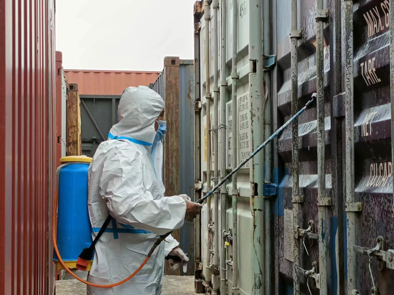 溫州西站工作人員對到達列車開展消殺工作。吳舒暢攝