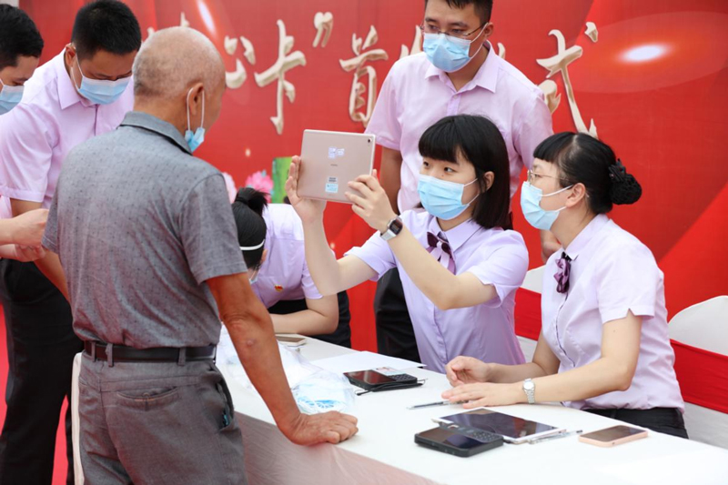 現場,農行溫嶺大溪支行為馬鞍村一村民辦理了首張“臺州孝心卡”,并發放了首筆“孝心貸”。據統計,當天上午現場辦理“臺州孝心卡”100多張,受理農戶貸款300萬元,發放養老金融、防范電信網絡詐騙相關內容宣傳折頁500余份,向現場老年人贈送意外險300余份。