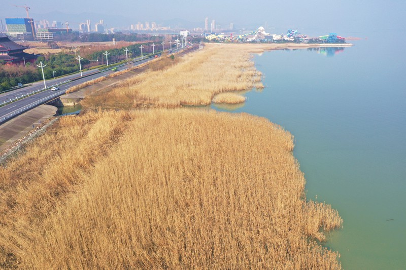 太湖邊綿延數十公里的蘆葦蕩。湖州市南太湖新區生態環境分局供圖