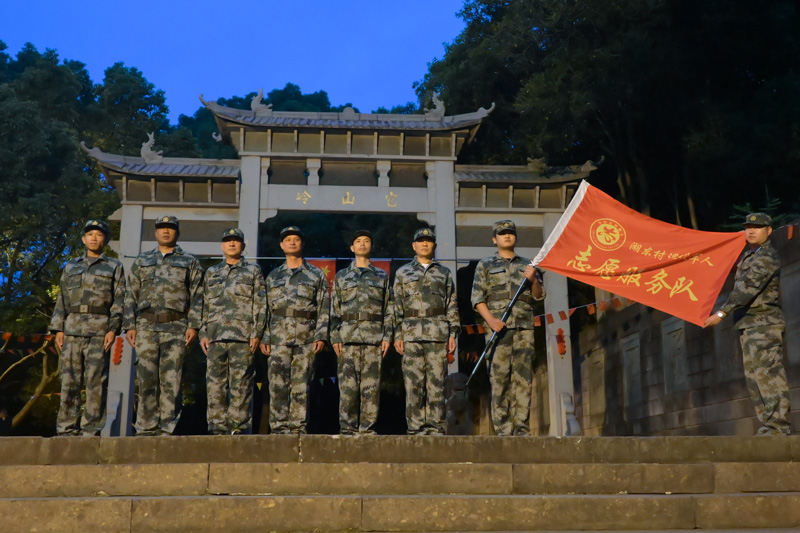 “我們在前頭,你們年輕人后頭跟上!”“銀發護旗隊”隊長陳通喬向大伙揮手說?!傲⒄?!齊步走!”隨著一聲哨令,觀海衛鎮湖東村退役軍人志愿服務隊的退伍軍人齊步出發,外賣小哥及當地鎮村黨員們手舉國旗緊隨其后。