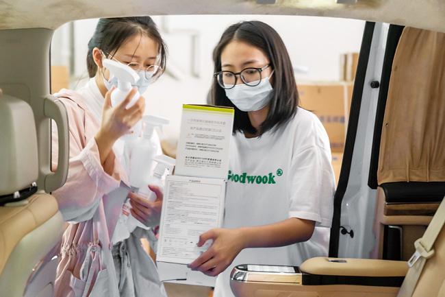 10月5日13時,金華開發區秋濱街道物管中心工作人員來到金華開發區防疫物資集中點。這次他們一共要運送7車物資回街道,包括防護服、防護口罩、消毒液、采樣管等核酸采樣所需的各種物資。