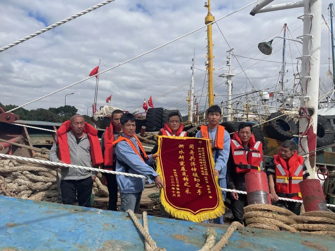 “那天多虧了你們,謝謝,謝謝……”一周后,“浙象漁24020”漁船全體船員一起為二人送來了錦旗。他們緊緊握住劉振國和鄭友臺的手,用質樸的語言表達著感謝。