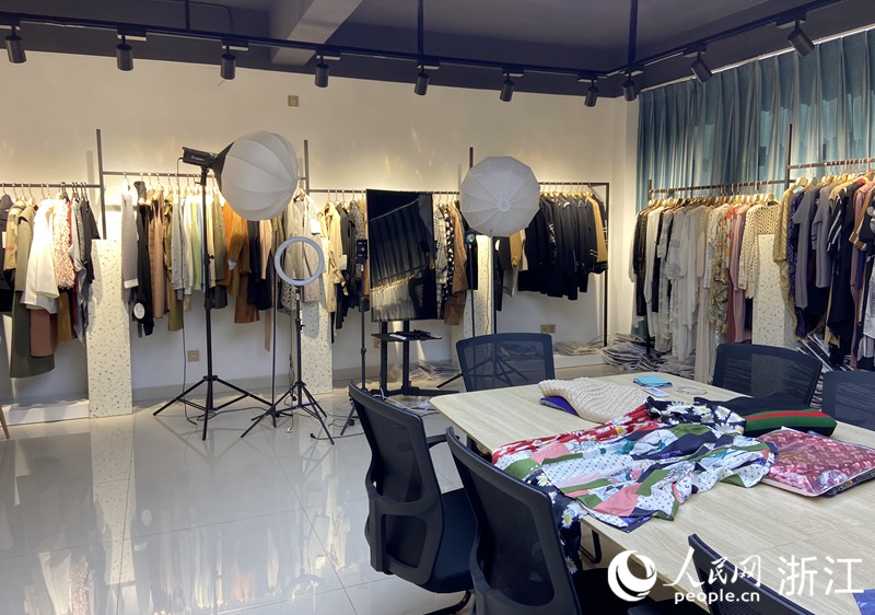 浙江康盈服飾有限公司直播間。人民網 方彭依夢攝