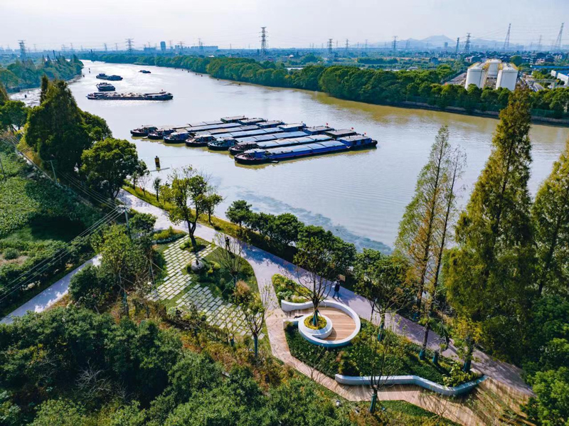 “這里原本都是做小五金加工的廠房,周邊環境又臟又亂,變成現在這個模樣我們是想也不敢想的?!闭谏⒉降木用駥O大伯說。今年年初,北靠京杭大運河、南臨塘涇漾垂釣湖泊的五杭運河文化公園建成開放,綠道景觀、亭臺樓閣一應俱全,原本雜亂無章的沿河環境發生了翻天覆地的大變化?!艾F在,往東邊走的綠道也快修好了,村里環境這么好,怕是城里人都要羨慕了?!睂O大伯說。