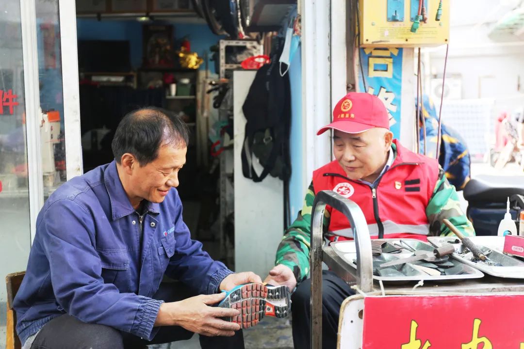 “修鞋找他就對了,又快又好;修自行車、修拉鏈、配鑰匙這些活他也在行。我們社區少了他,還真沒第二個人能干得了?!闭谂赃呴e聊的大姐附和道。還沒等老郭坐下,居民趙大伯拿著一雙運動鞋又找了過來,“大家都是老街坊了,我和他還都是社區黨支部的黨員,所以特別信任他。老郭的技術也好,以前還修過飛機咧!”