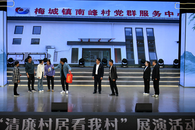 在展演評比現場,各參賽村(居)黨組織書記上臺對清廉村(居)建設及展演作品進行了介紹,講述在清廉村(居)建設過程中的有力舉措和取得的進展。隨后,文藝展演拉開了帷幕。展演表現形式多樣,包含了情景劇、小品、歌舞、快板等,參演各村(居)的文藝展演都為原創作品,由村(居)干部、村(居)民自編自導自演,反映了參賽村(居)在清廉村(居)建設過程中的真人真事。演員們本色演出,使比賽現場充滿了笑點與淚點,在寓教于樂的同時,給予在場觀眾溫情與警示。