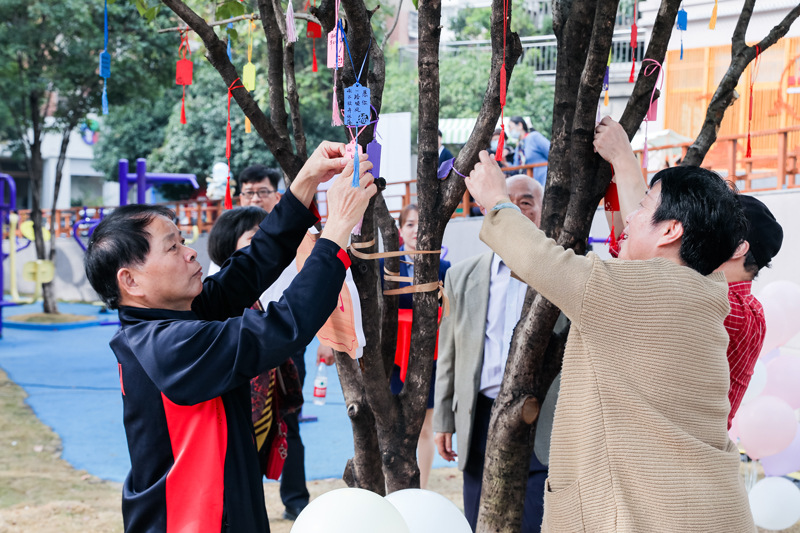 大家在“幸福樹”上寫下愿望,寓意種下“幸?!?,收獲美滿。趙浩攝