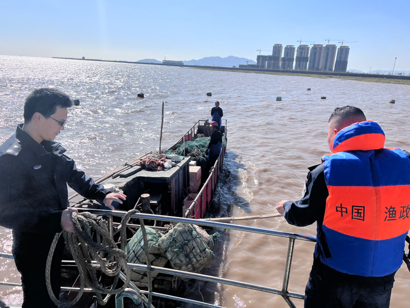 近日,龍港市海洋與漁業執法大隊聯合溫州平陽縣海洋與漁業執法大隊、平陽縣交通運輸局等部門,開展了封江清港大檢查大執法聯合行動。經過前期排摸,執法人員發現鰲江流域各個岙口有涉漁“三無”船舶存在,正準備出海非法生產。執法部門隨即出動中國漁政33418艇、浙港航巡0962艇及兩艘護漁船開展集中清理取締,一舉查獲涉漁“三無”船舶7艘,收繳非法網具50余張。