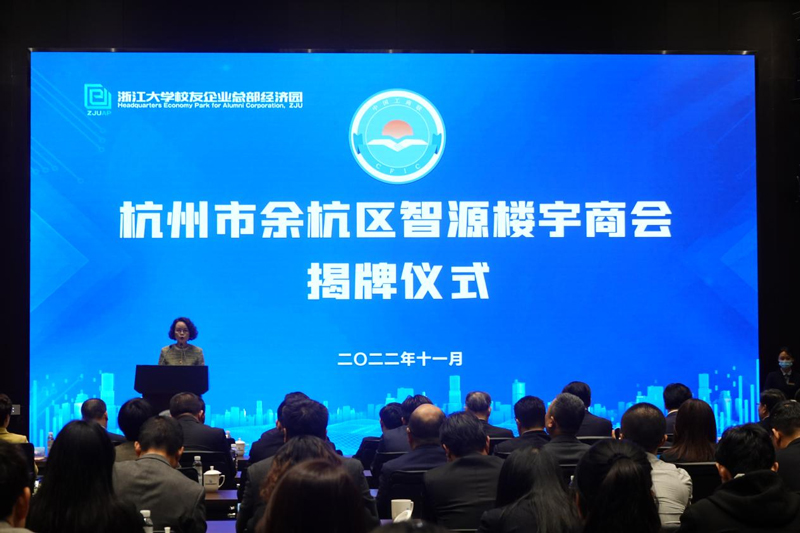 近日,杭州市余杭區智源樓宇商會揭牌儀式在浙江大學校友企業總部經濟園一期(浙大智源)樓宇舉行,智源樓宇商會也成為杭州市首個樓宇商會?;顒蝇F場還進行了“之江同心·新時代創客說”授旗儀式。
