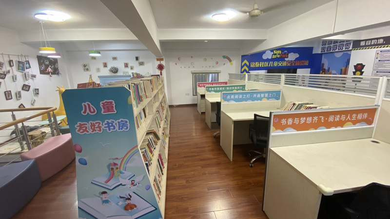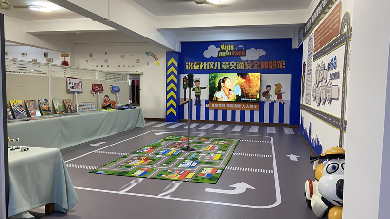 在銘泰社區為兒童打造的休閑區內,配備了創意休息椅、繪畫材料、健身器具、益智桌游等兒童用具;圖書閱覽區內,有各類兒童圖書、讀物等一千余冊;該社區還專門設計了交通安全體驗館為孩子們學習交通知識提供展示空間。為保證兒童步行空間的交通安全,銘泰社區還在兒童公園和幼兒園門口設計了愛心斑馬線。