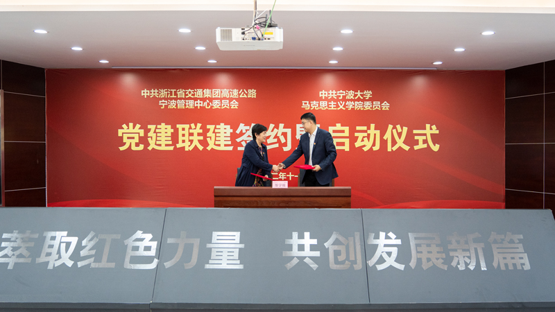 近日,浙江省交通集團寧波管理中心黨委(以下簡稱寧波管理中心黨委)與寧波大學馬克思主義學院黨委(以下簡稱寧大馬院黨委)舉行“紅色智庫”黨建聯建簽約暨啟動儀式。