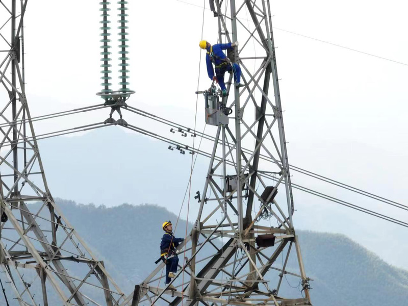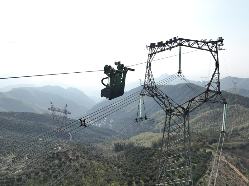 11月26日,輸電線路員工在紹興500千伏線路上首次安裝破冰機器人。國網紹興供電公司供圖