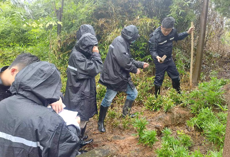 專案組的辦案民警湯浩洋沒少參加這樣的工作,有一次與同事一起到山頂開展現場辨認,他作為開路者拿著砍刀劈柴清障,誰知樹林枝椏橫亙、路況不明,他一不小心一腳踩空掉入了嫌疑人盜掘的盜洞中。