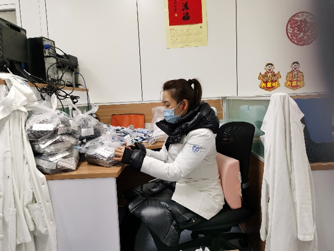 當前,該院門診藥房的藥師也陸續出現高燒等癥狀,面對人手嚴重不足的情況,藥學部其他人員紛紛行動起來積極支援。退燒藥到了,但來不及分包,那就實驗室的同事們來干;退燒藥供應短缺,藥庫的同事們時時盯緊藥品采購平臺,全力保障緊急藥品供應……
