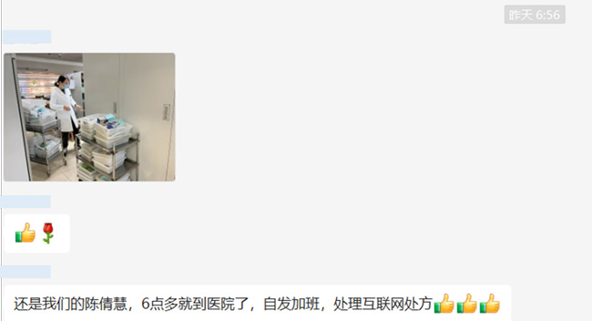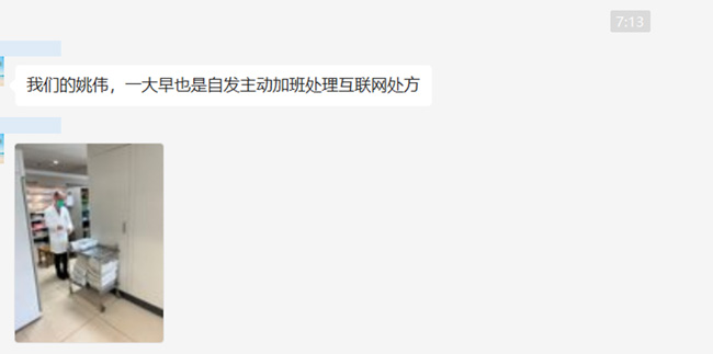 近日,該院互聯網醫院處方“井噴”,從原來的每日幾十張上漲到每日500多張。加上門急診患者數量激增,藥師們的工作量大幅增加。雖然沒有規定、沒有要求,但為了讓患者少排隊、少等待,他們自發將上班時間提前?!拔覀冊鐏硪稽c,患者就能早點拿到藥了!”藥師陳倩慧說。