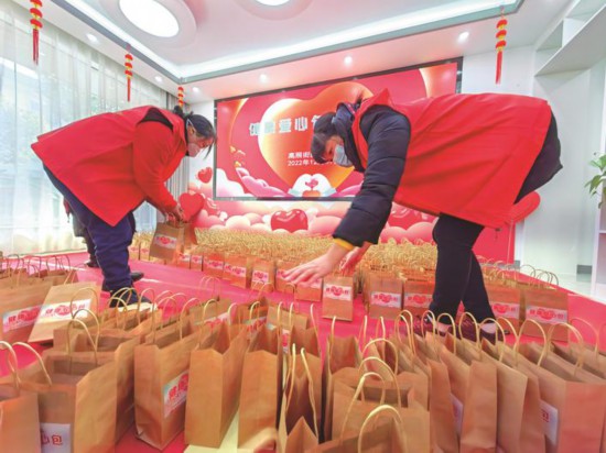 2022年12月31日下午,嘉興秀洲區高照街道各村社組織人員將“防疫包”陸續發放到轄區內60歲以上老人手中,為他們送上新年祝福和關心關愛?!胺酪甙迸溆薪鉄徭偼搭愅藷?、清熱解毒類中成藥、醫用外科口罩、消毒液等,另附一份防疫健康溫馨提示,指導老年人加強防護、科學防疫、合理用藥。(馮玉坤)